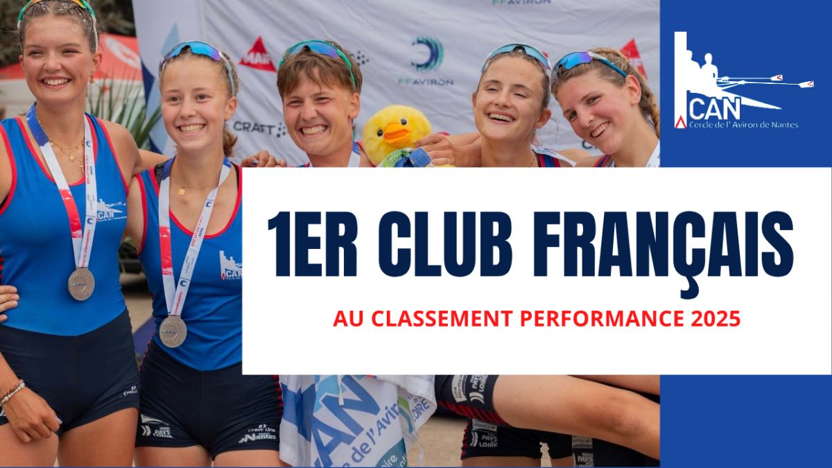 Nous avons l’immense honneur et la grande fierté de vous annoncer que le Cercle de l’Aviron de Nantes est le 1er club français au classement performance 2025, pour la troisième année consécutive !